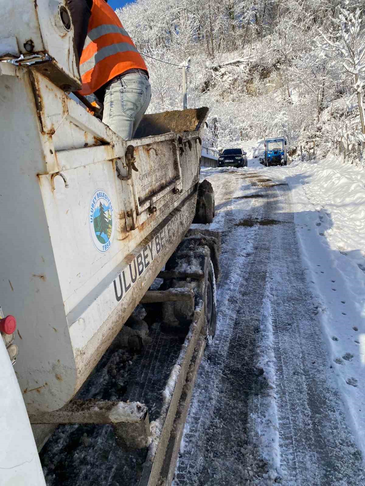 Ordu’nun ulubey ilçesinde, etkili olan kar yağışının ardından yolların açık tutulması için yoğun çalışma yürütüldü.